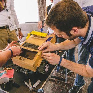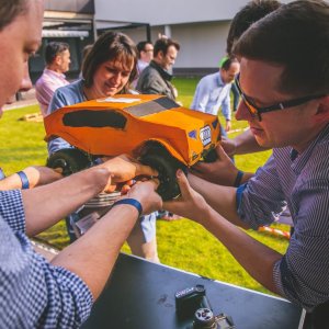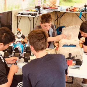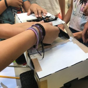 Our instructors guide children through a “team-building” creative construction of their own remote-controlled racers.