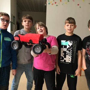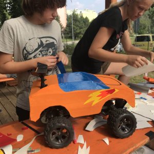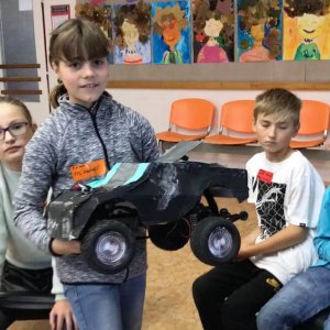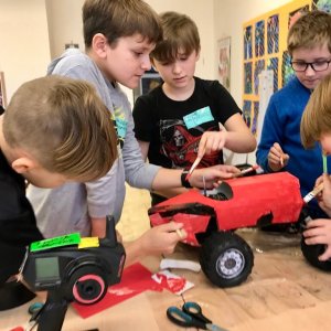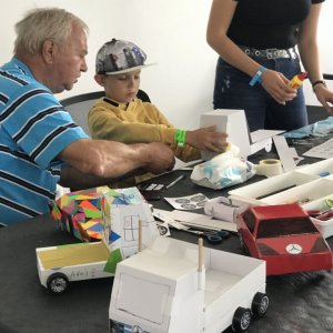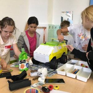 For younger children and lower grades, we have a program where they build various modes of transportation from prepared templates. We choose suitable themes such as superhero cars, buses, trams, car brands, travel cars, cars of famous personalities, etc. Creativity and freedom have no limits. It can even be a cake on wheels, a wardrobe, anything really. The cars have rotating wheels.