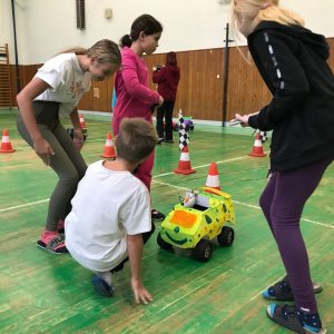 2-3 grades (2-3 times with 25 children each) in the gym / 3 + 3 teaching hours consecutively / two instructors / 5 cars / Price is 12,000 CZK