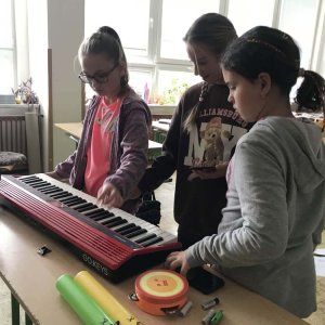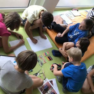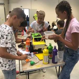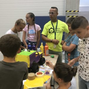 Evaluation and feedback, and other tasks can involve bringing musical instruments, and children have the task of creating a team jingle. We distribute tasks in groups related to physics, mathematics, English; children draw cars blindfolded, perform pantomime for other teams, and more. We can also bring a 3D printer and other technologies to teach 3D drawing.